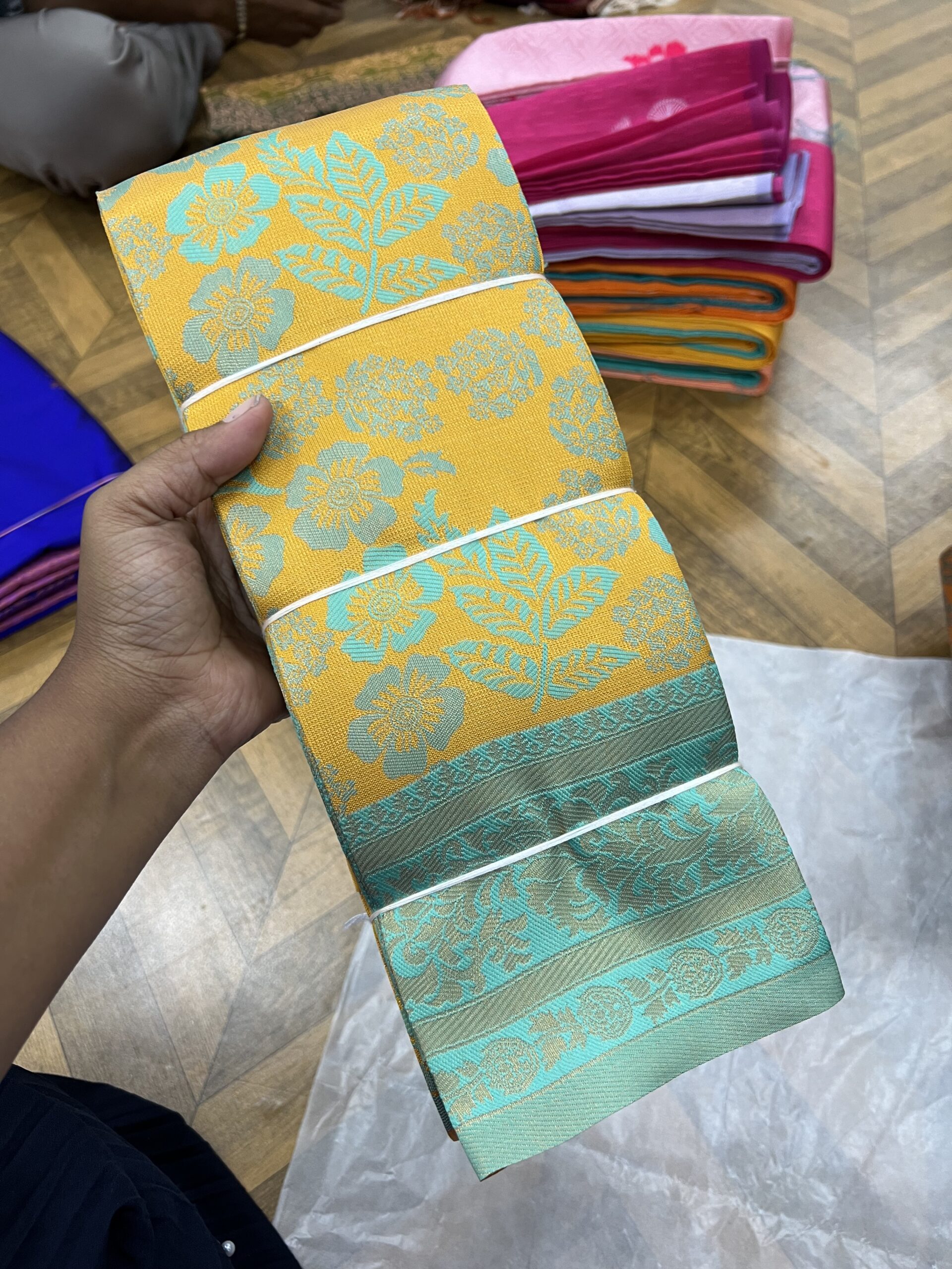 Flower tissue embossed semi Kanchi
