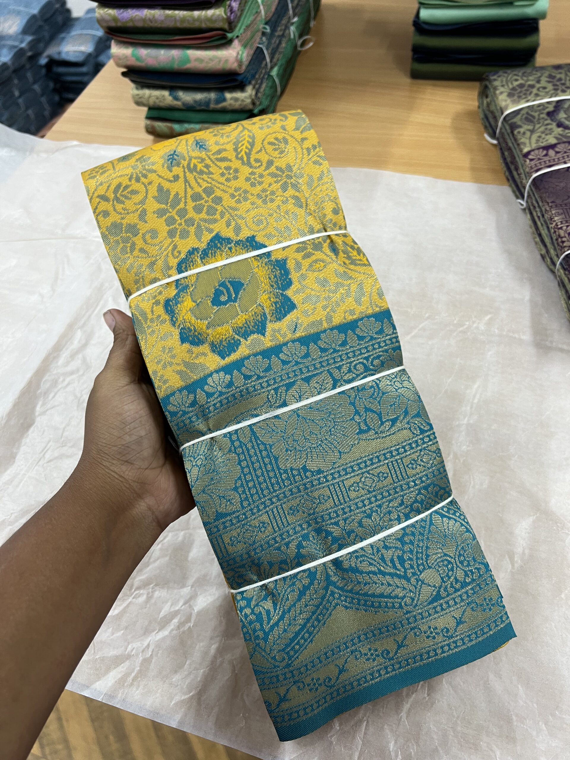 Yellow with copper sulphate blue